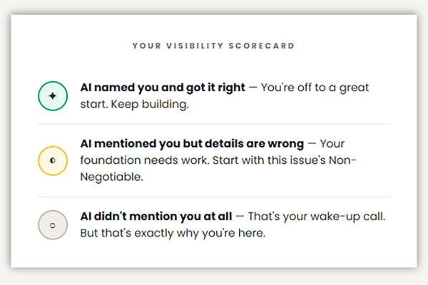 Practical AI visibility tips for small businesses. Free, biweekly.
